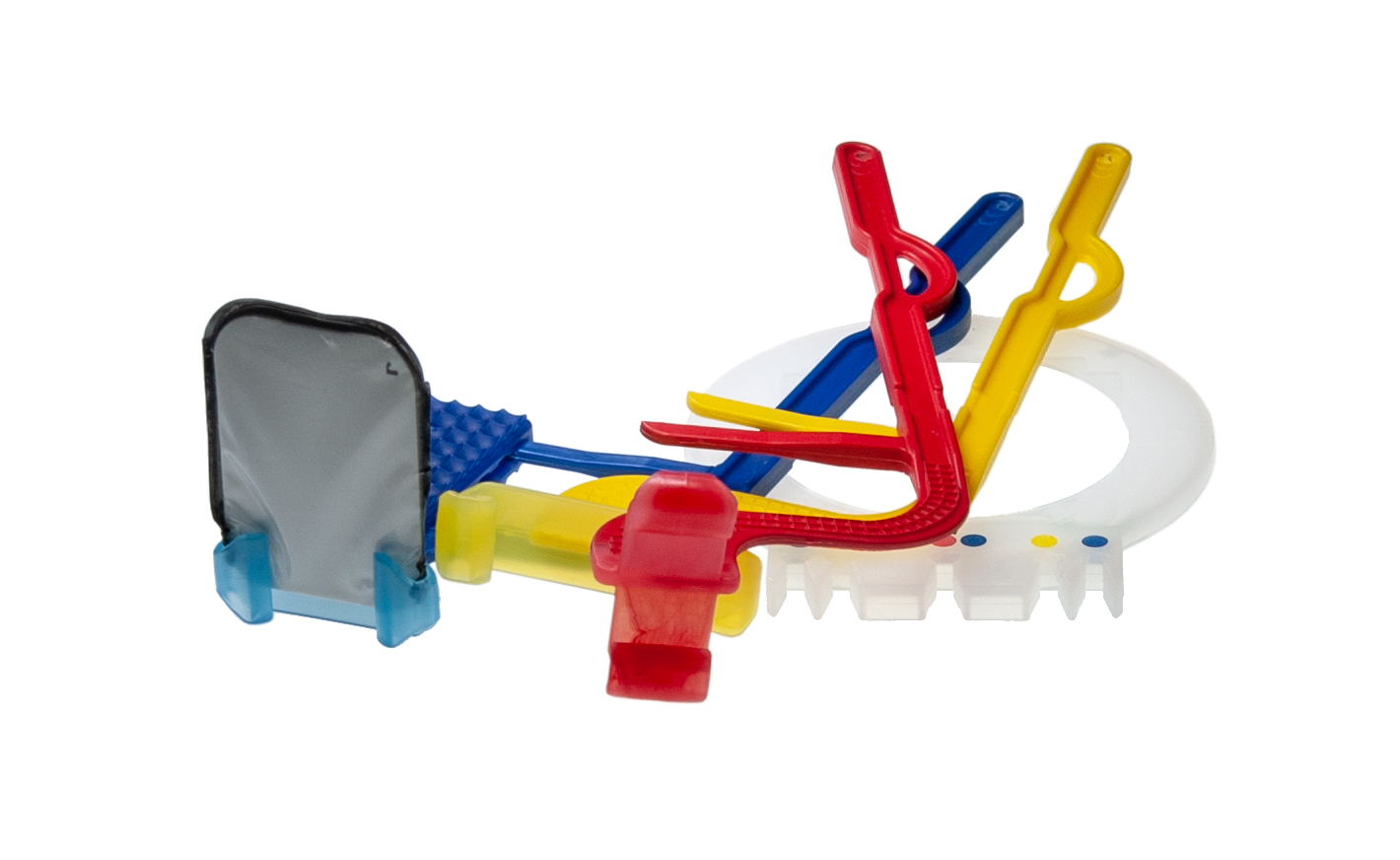 Das System umfasst lediglich drei farbcodierte Halter: